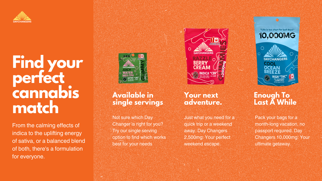 take an adventure. A single serving of sunshine. Your tangy mango escape, perfectly portioned for the moment. Your weekend getaway in a bag. Ten tangy mango gummies for a short, sweet, and unforgettable escape. Forty tangy mango gummies for a passport-free, full-spectrum getaway. cannabinoid combinations! Your perfect mix is here. Our new line of cannabinoid blends features expertly crafted combinations of THC, CBD, CBG, and CBN, so you can find the exact experience you're looking for. THC CBD CBG CBN